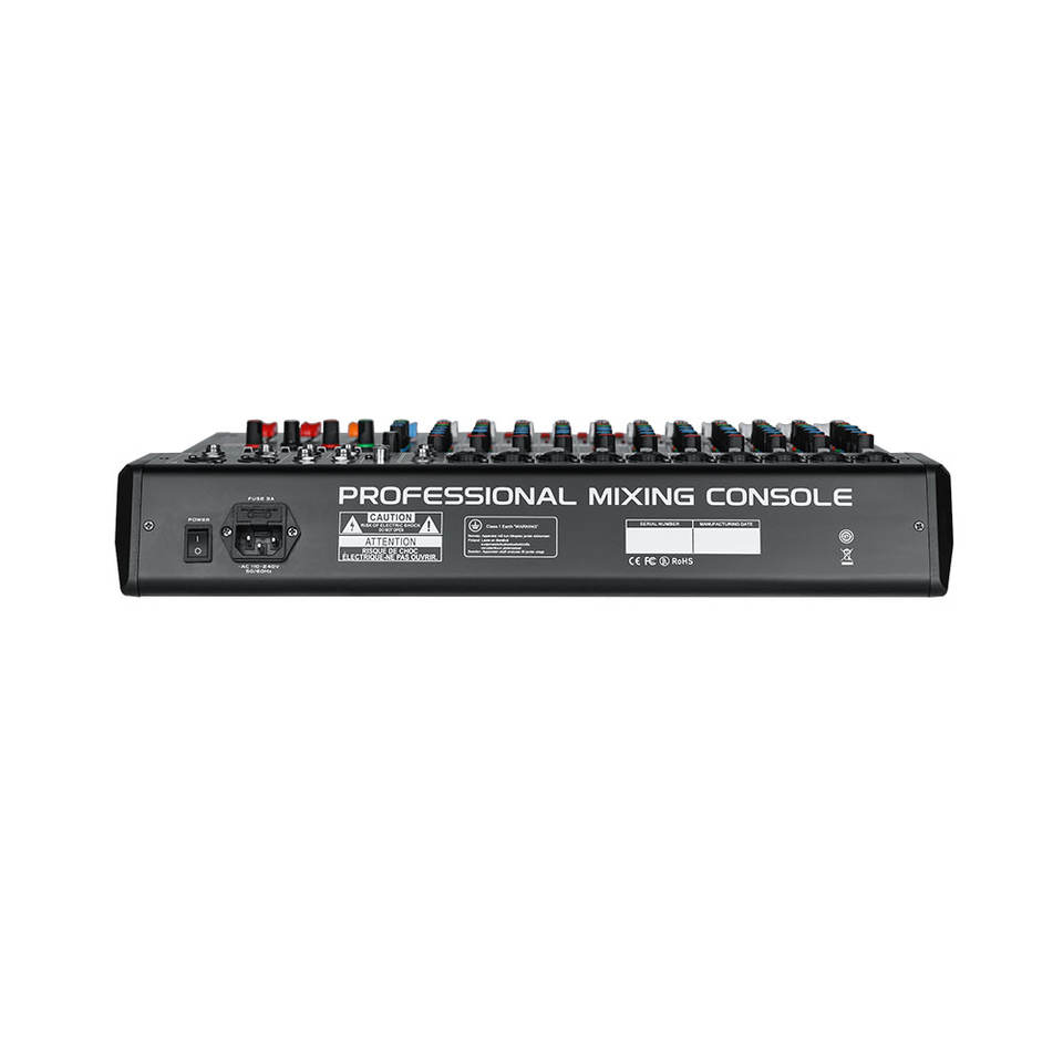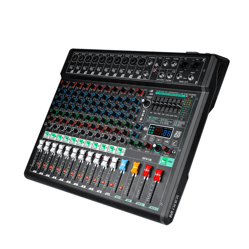 EIF XFX-12 Console de mixage audio USB professionnelle 12 canaux en métal avec effets intégrés Enregistrement Bluetooth DJ pour les fêtes en plein air