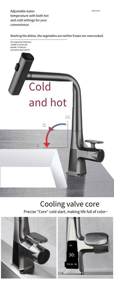 Flexible, Sens de robinet, 360 degrés tournent, Tirer vers le bas les robinets de cuisine, Robinets thermostatiques, Robinets électriques, Douchette amovible, Éclairage LEDDispositif