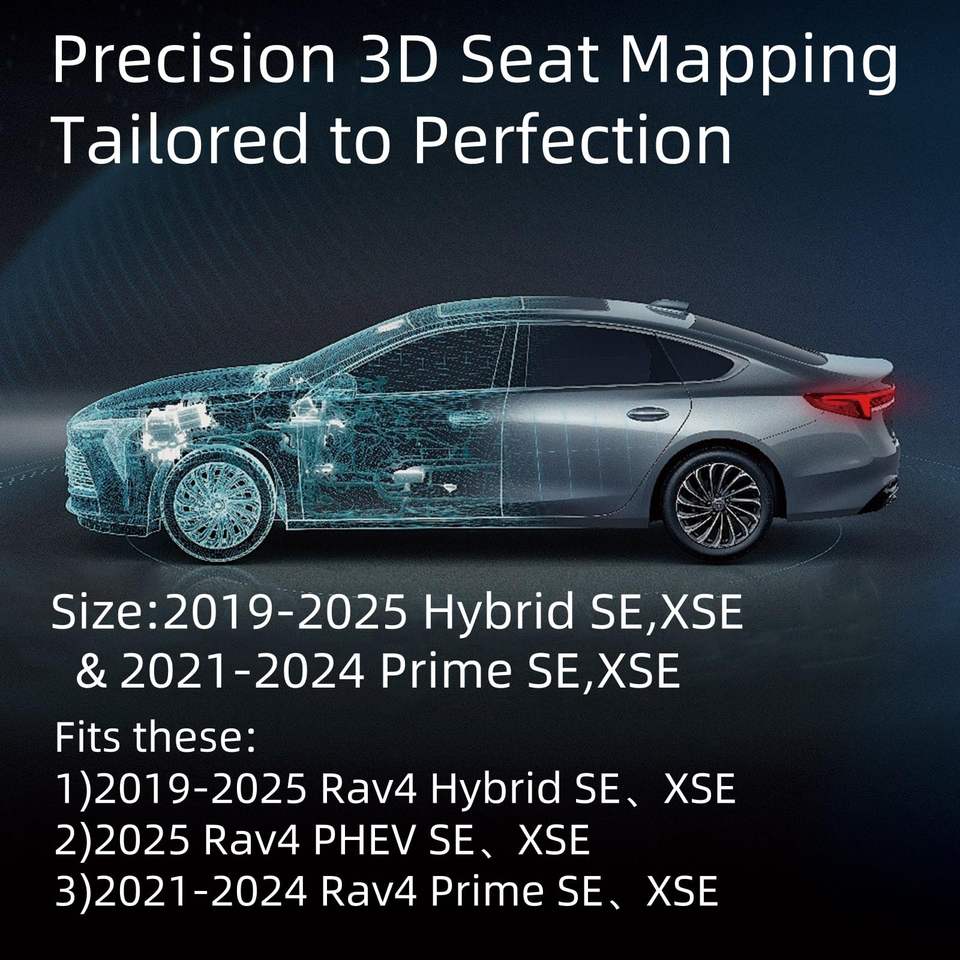 Housse de siège auto personnalisée EKR pour certains modèles Toyota RAV4 2021-2024 Prime SE, XSE & 2019-2025 Hybrid/PHEV SE, XSE - Ensemble complet, cuir