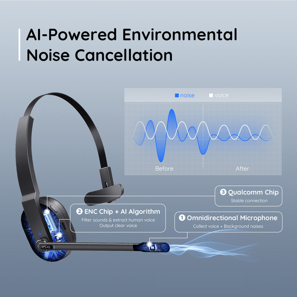 EKSA H5 BT 5.0 Casque d'écoute PC sans fil 2 micros ENC Écouteurs avec base de chargement et clé USB pour bureau
