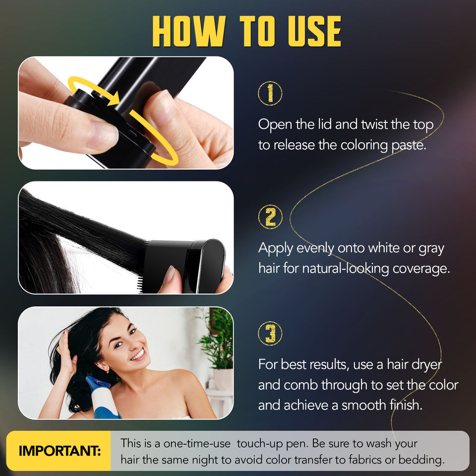 Couvre instantanément les cheveux gris, facile à utiliser et sans dégâts.