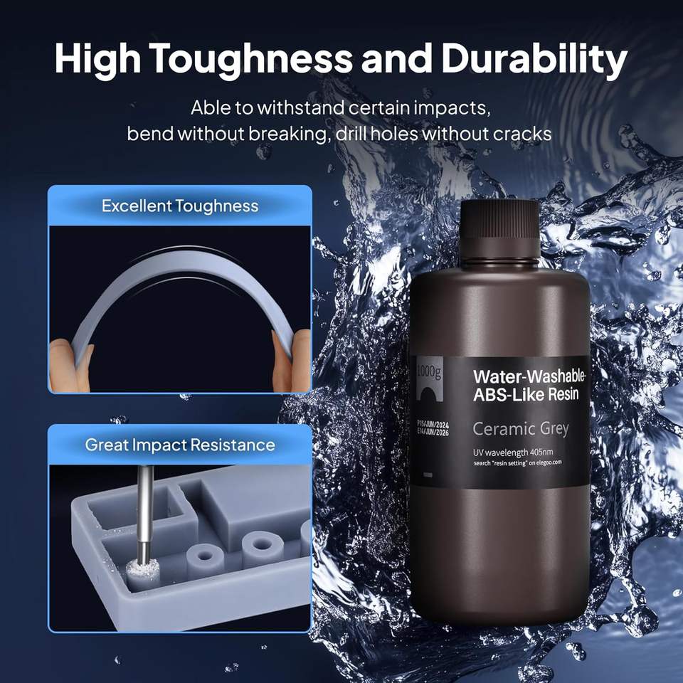 Résine lavable à l'eau de type ABS grise céramique ELEGOO B0D6RDK3L4 2000g pour imprimantes 3D, haute performance, durable, faible odeur, 4,41 lb
