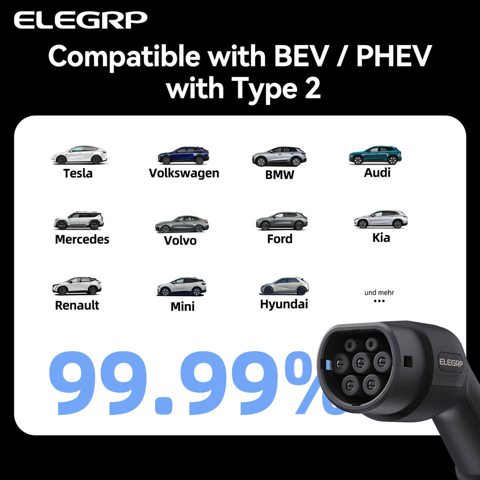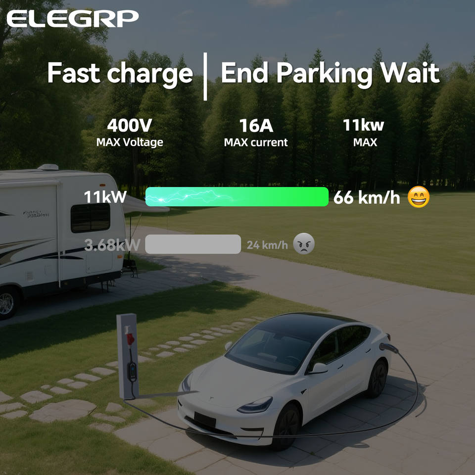 Stations de recharge pour véhicules électriques ELEGRP, norme européenne AC 16A, type 2, EVSE, chargeur de véhicule électrique portable 11KW pour usage domestique