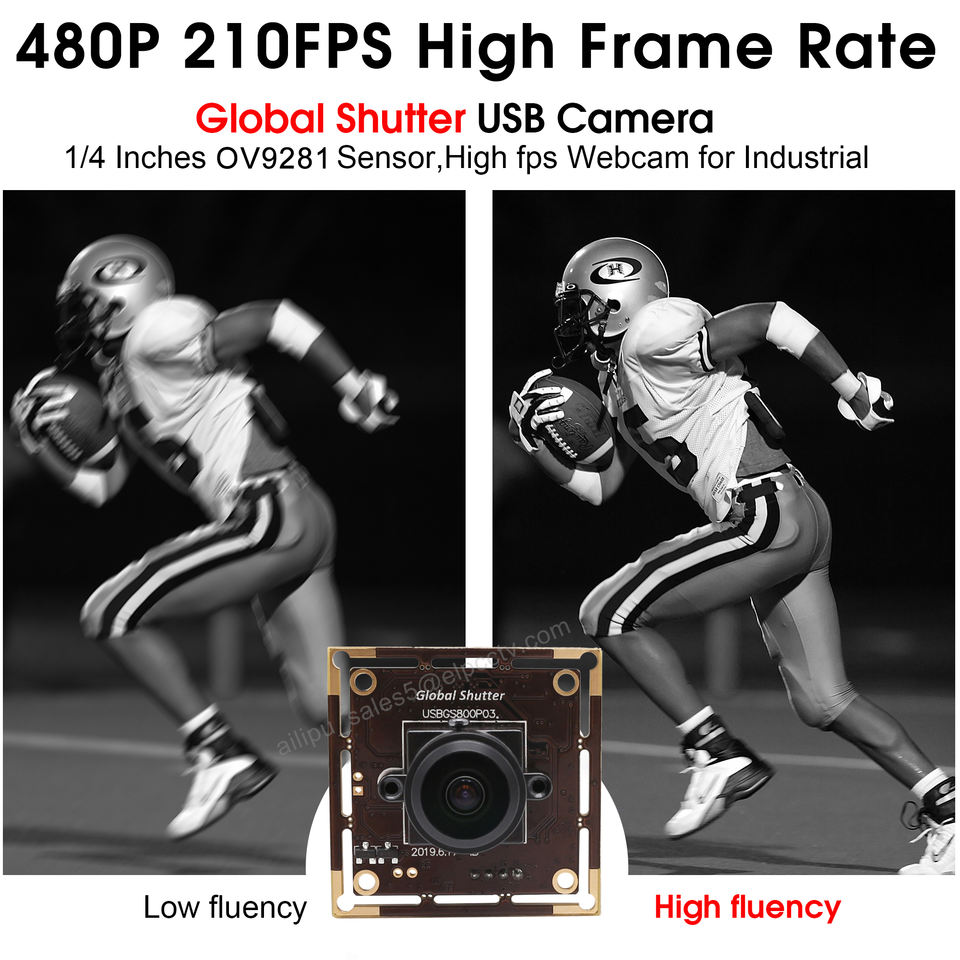 Fonction:Caméra globale d'usb de volet, 120fps/210fps/420fps/640fps à grande vitesse, capteur monochrome de la caméra OV9281