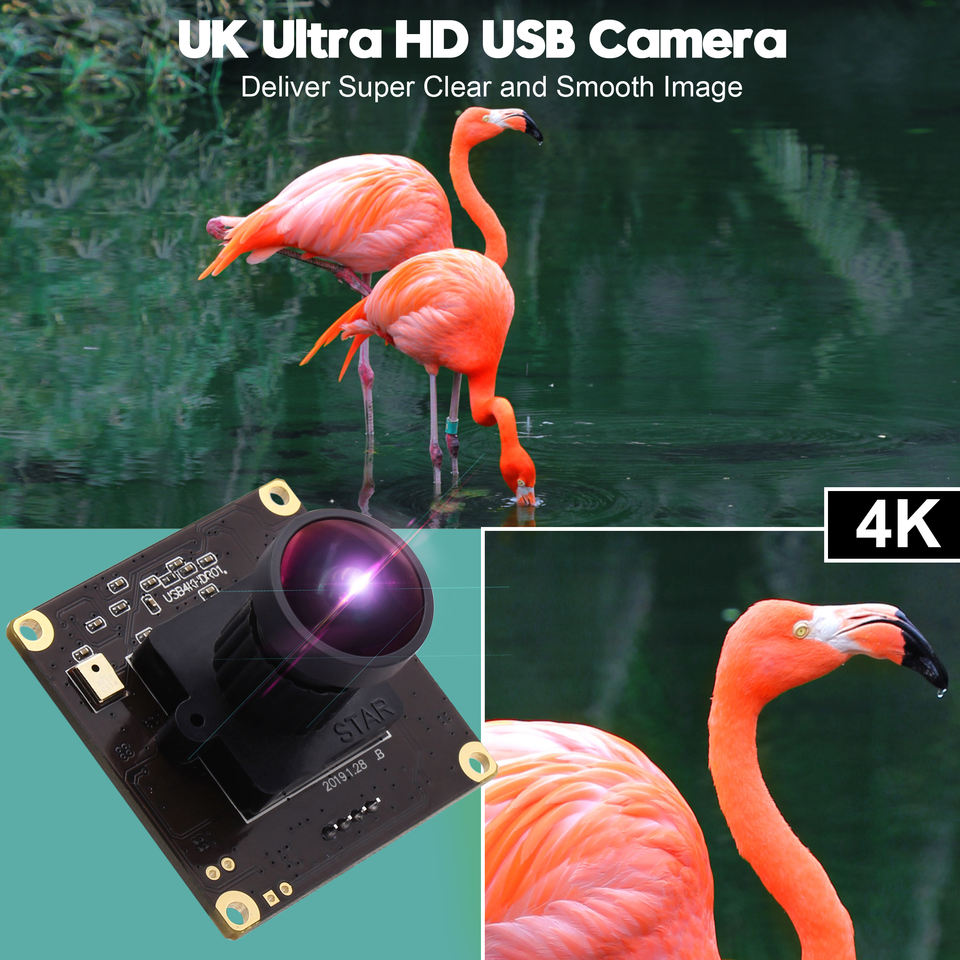 Caméra ELP 4K avec capteur IMX317, module de caméra HD, objectif fisheye 170 degrés, caméra USB avec microphone, webcam pour Android
