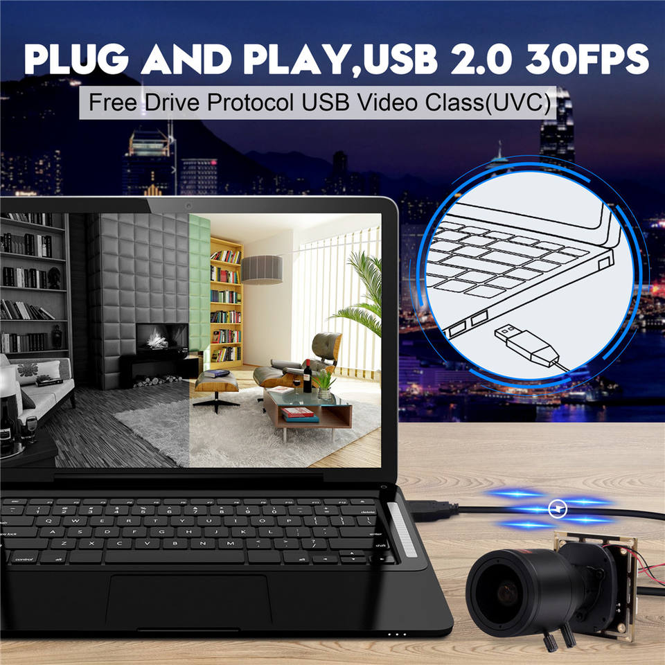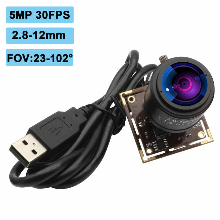 Caméra USB grand angle ELP 5MP avec pilote d'objectif M12 2.8-12mm Plug & Play gratuit Webcam USB HD 5MP 30FPS pour la capture vidéo