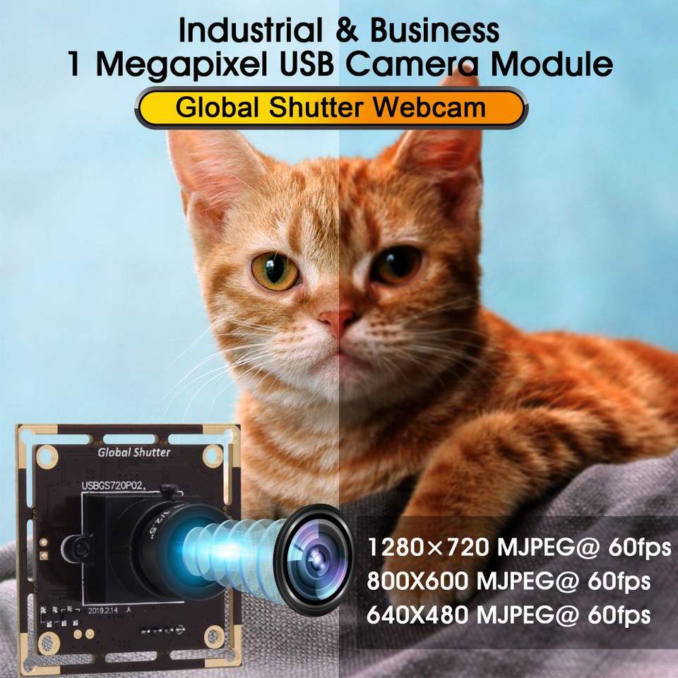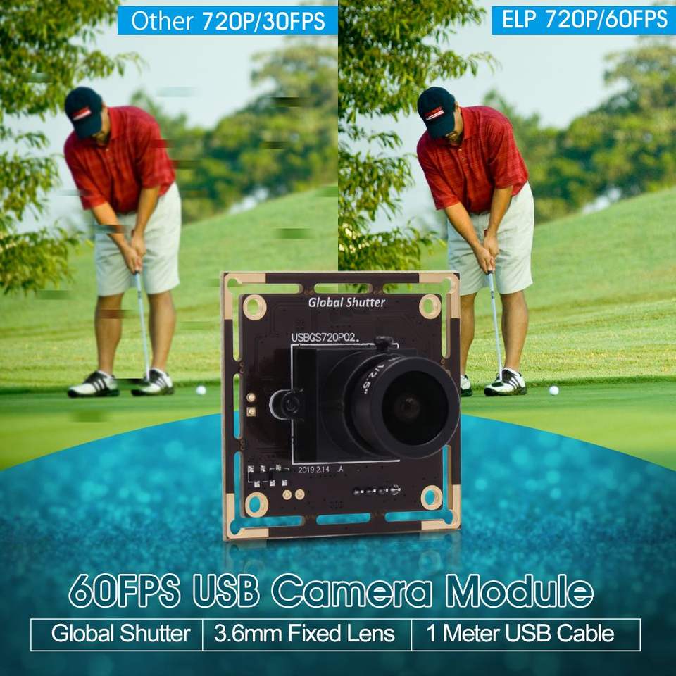 ELP 720P 1MP Global Shutter Module de caméra USB M12 Objectif 3.6mm AR0144 Webcam USB haute vitesse 60fps UVC 1MP pour Windows/MAC/Linux/Pi
