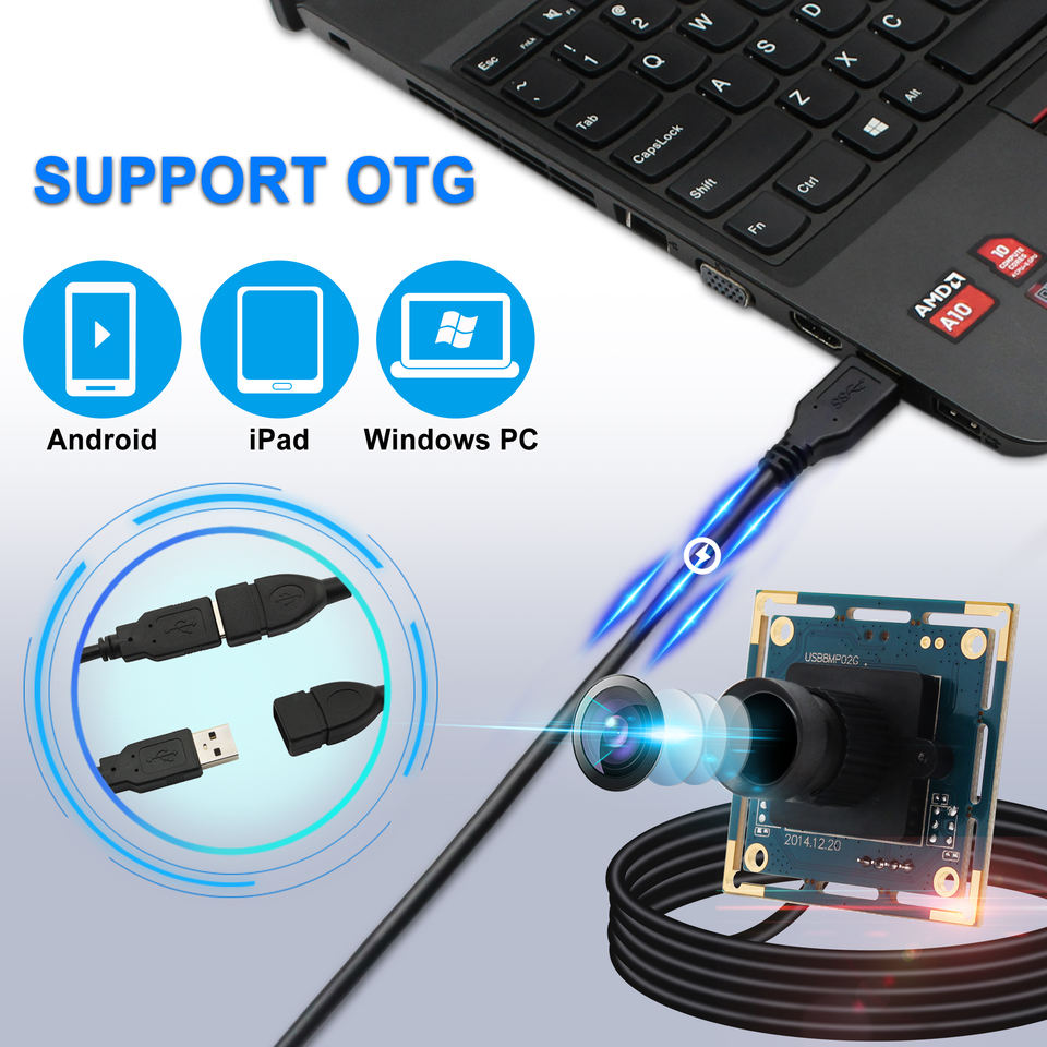 Module de caméra USB ELP à mise au point fixe 8MP avec objectif 8mm, nombreux autres objectifs en option, pilote gratuit, caméra micro USB pour Android