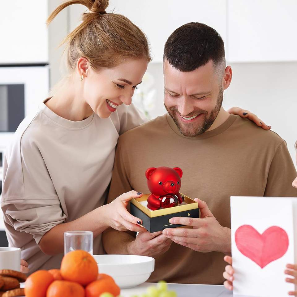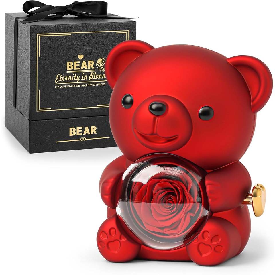 Matériau:Corps d'ours en plastique - Véritable rose stabilisée