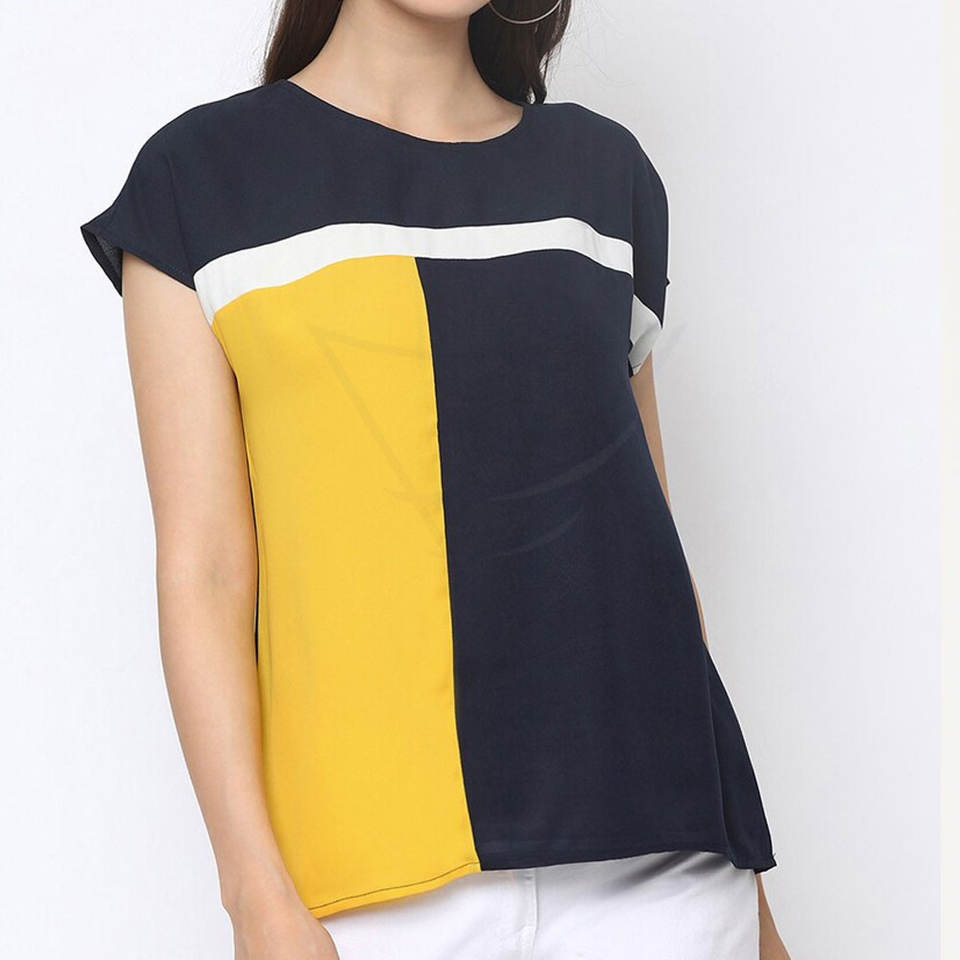 EM Service – t-shirt à trois panneaux avec Logo imprimé pour femme, vêtement décontracté