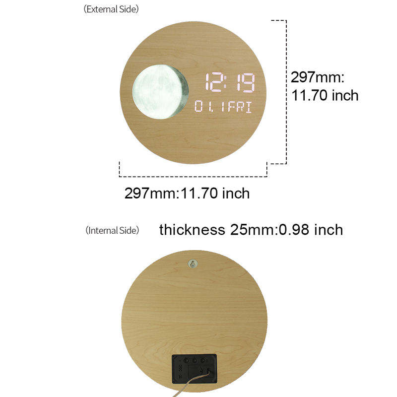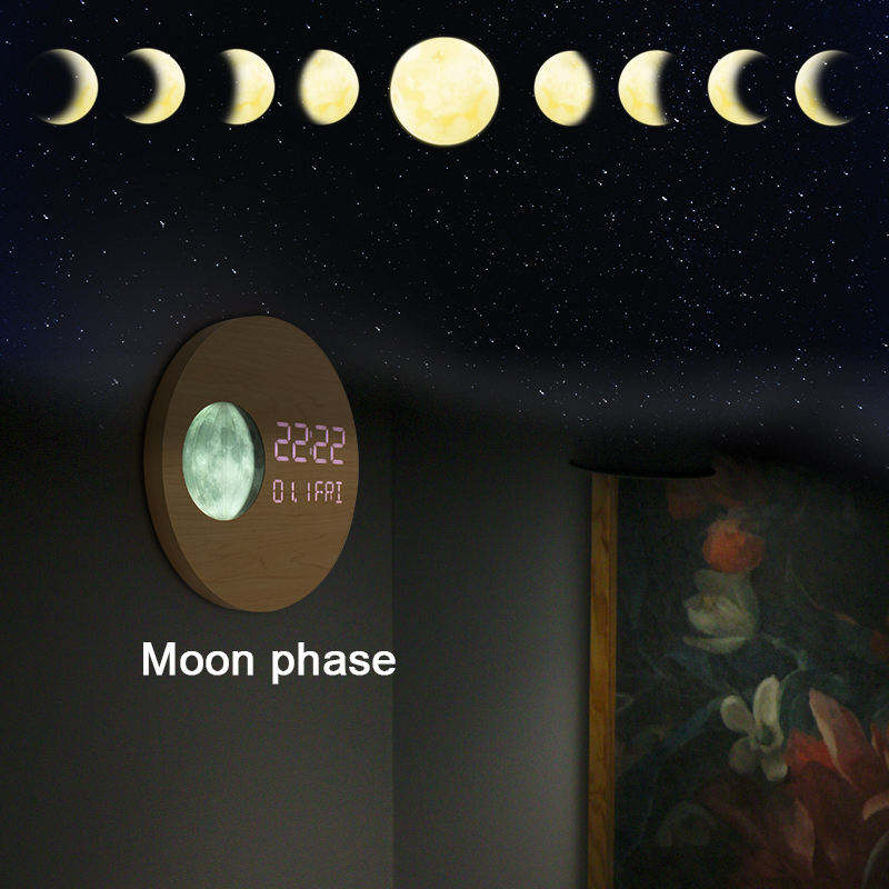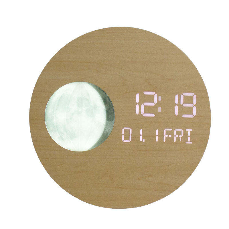 EMAF Grande taille alarme électronique géante en PVC Décoration minimaliste Design moderne Calendrier numérique LED Phase de lune Horloge murale à face unique