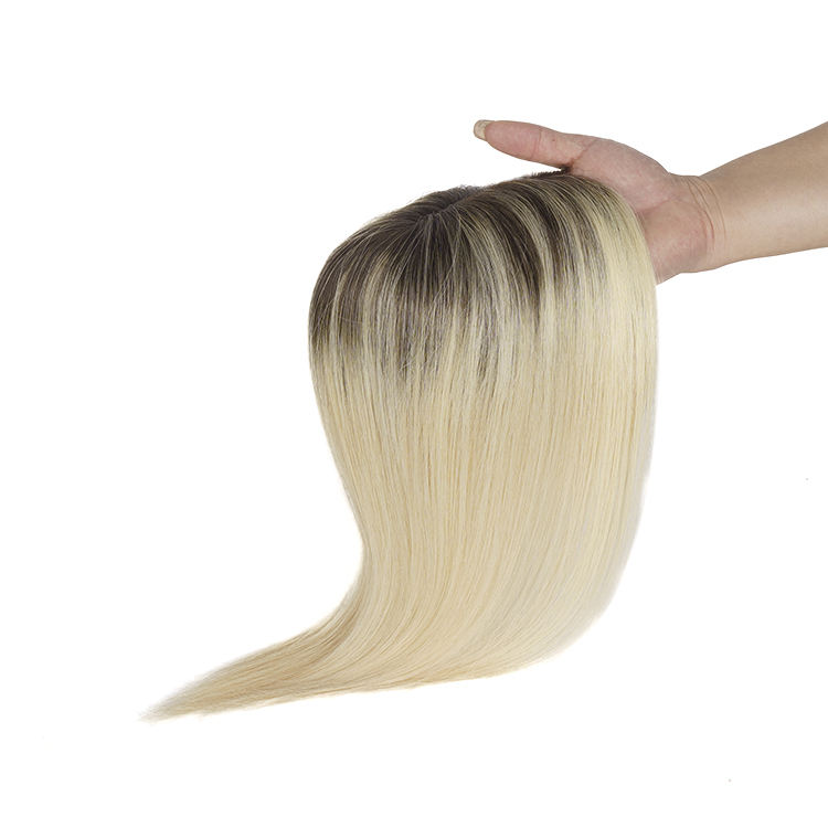 Topper mono fin EMEDA blond cendré ombre brune pour femme blanche pièces de cheveux humains