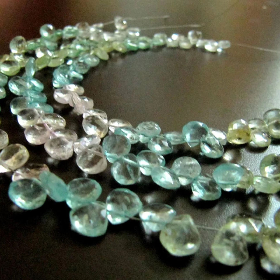 EMINENT JEWEL Naturel Multi Couleur Aigue-Marine Forme de Coeur Facettes 7-8mm Pierre Précieuse Brin 10 Pouces De Long