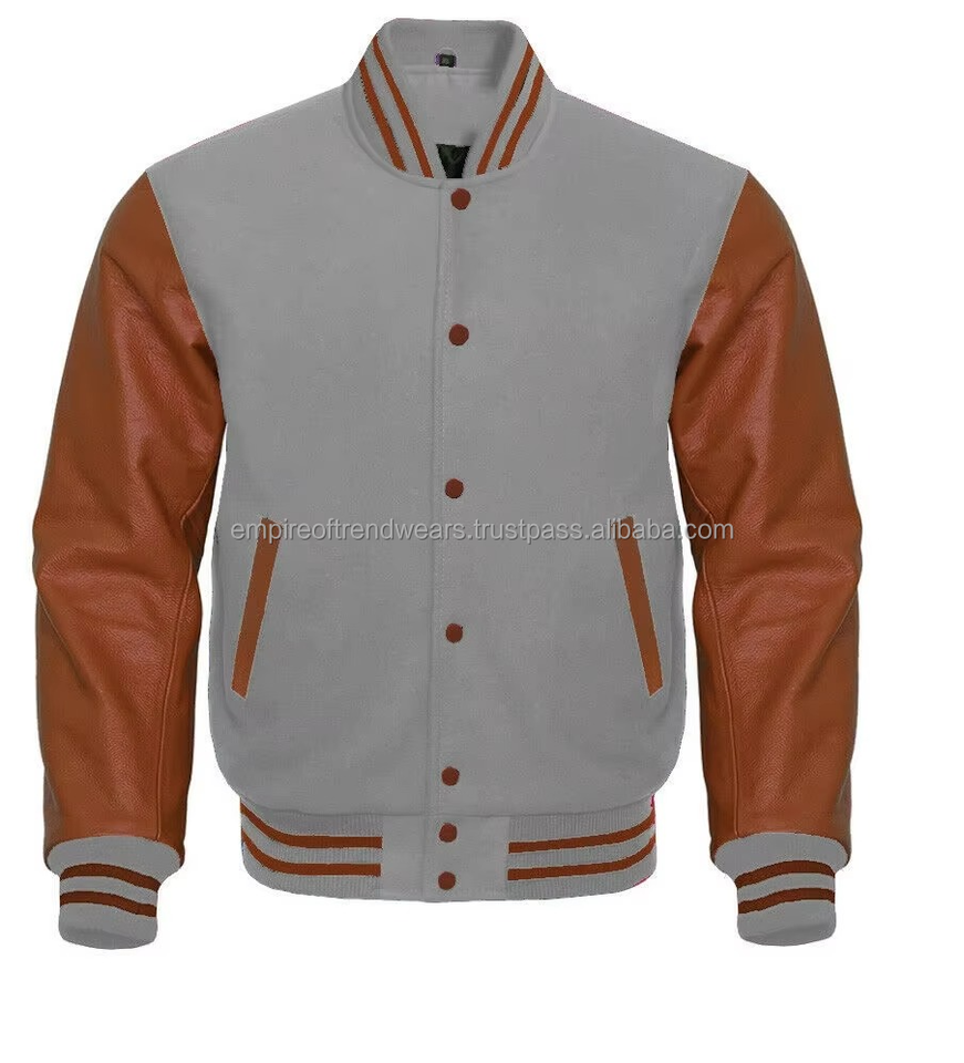 Veste universitaire décontractée pour homme EMPIRE TREND WEARS, haute qualité, personnalisée, en laine d'hiver, en cuir de mouton enduit, coupe-vent, chauffante, à col montant