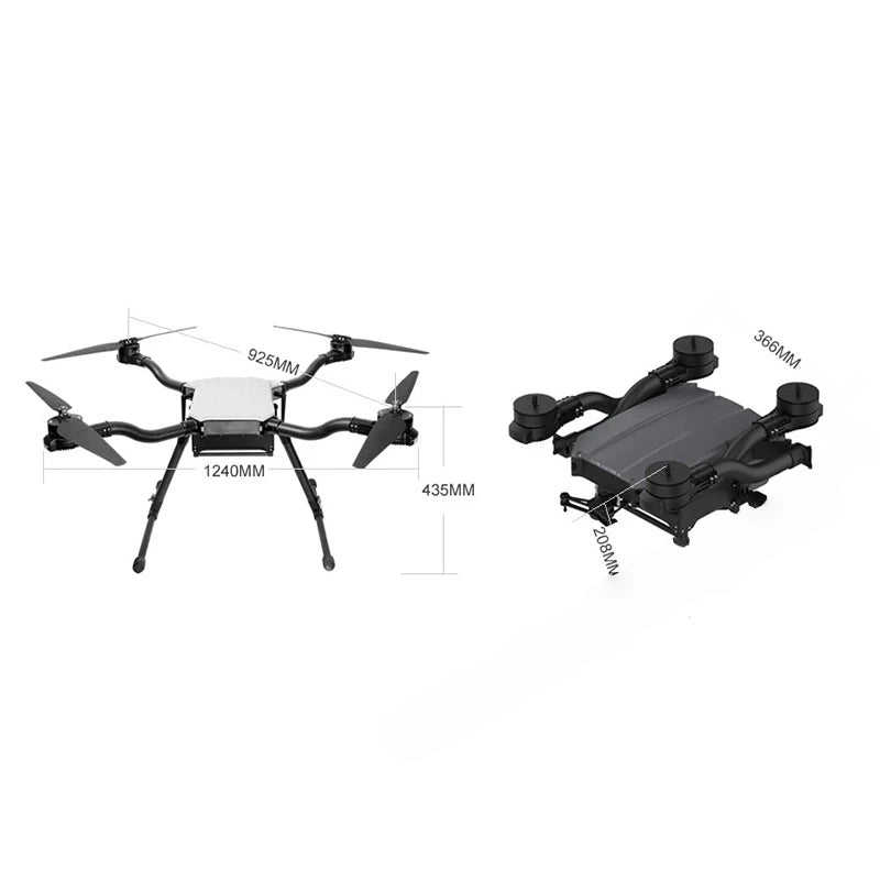 Drone quadrirotor pliable de qualité professionnelle EMT100 à empattement de 925mm, temps de vol de 70 minutes pour la logistique urbaine du dernier kilomètre