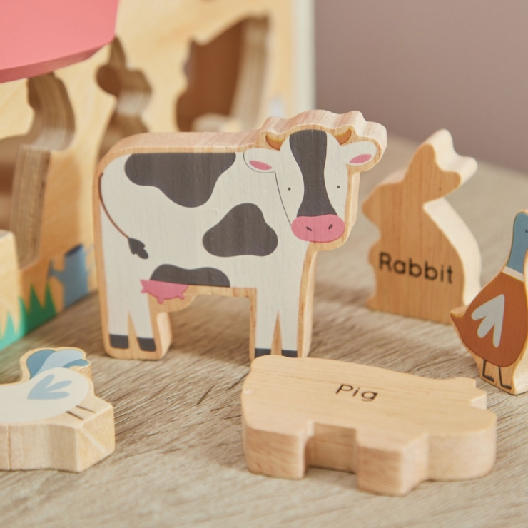 Jouet de zoo de table personnalisé en bois ferme heureuse maison de famille semblant jouer de rôle animaux de la ferme ensemble de maison éducatif pour tout-petits EN-71