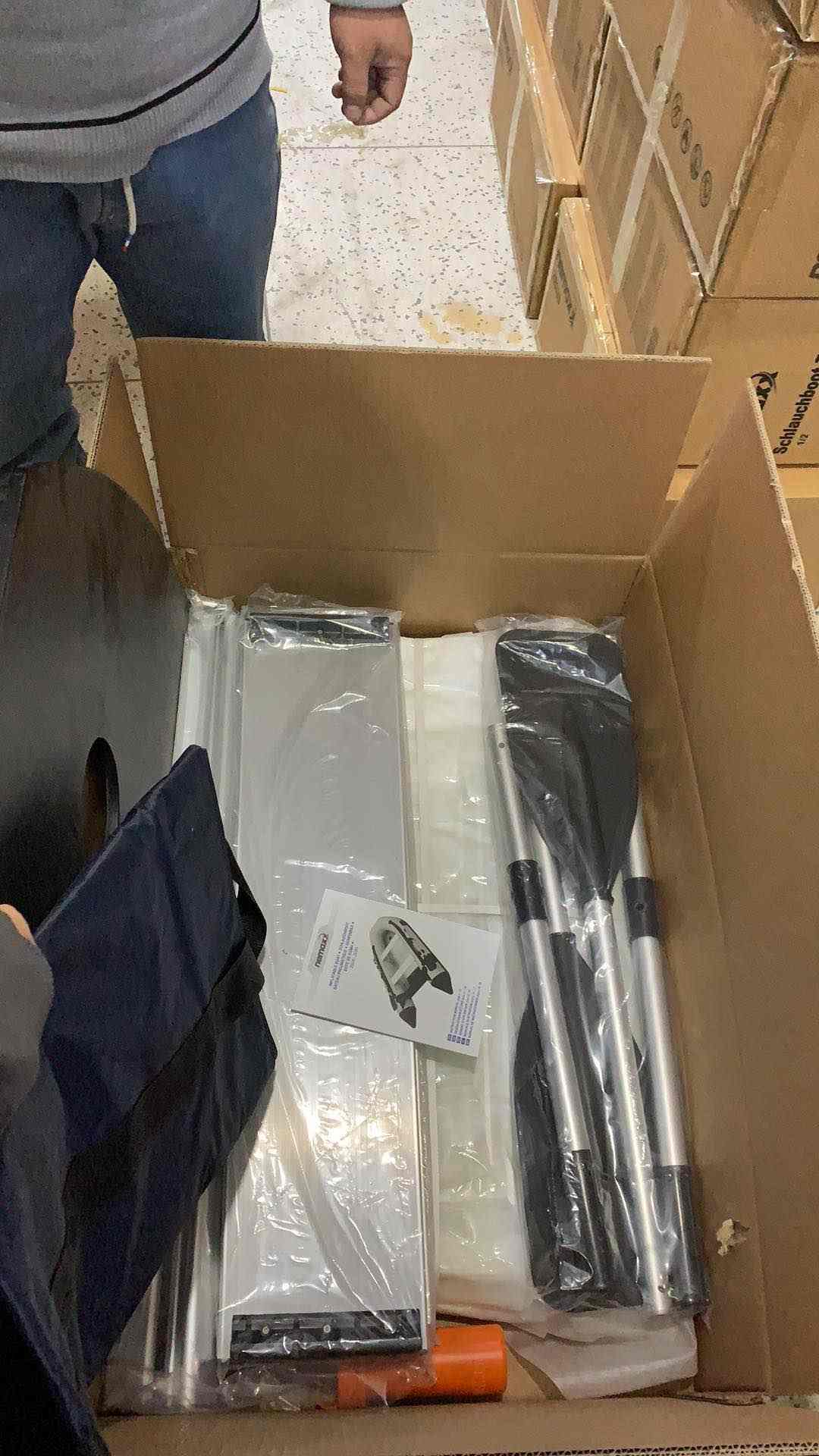 Accessoires standard:Pagaie, pompe à main, sac à dos, laisse, palmes et kit de réparation
