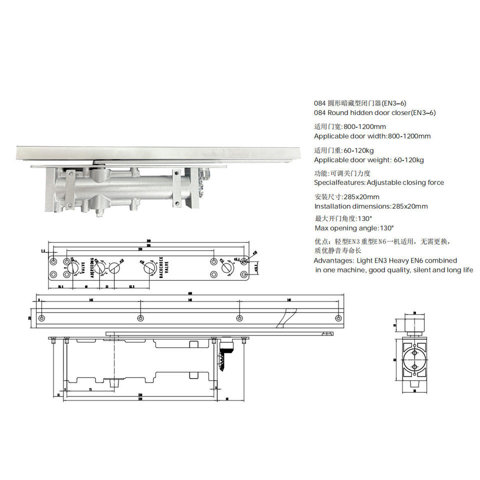 Ferme-porte invisible à came, force réglable de 60 à 120 kg, EN3-6Spécification