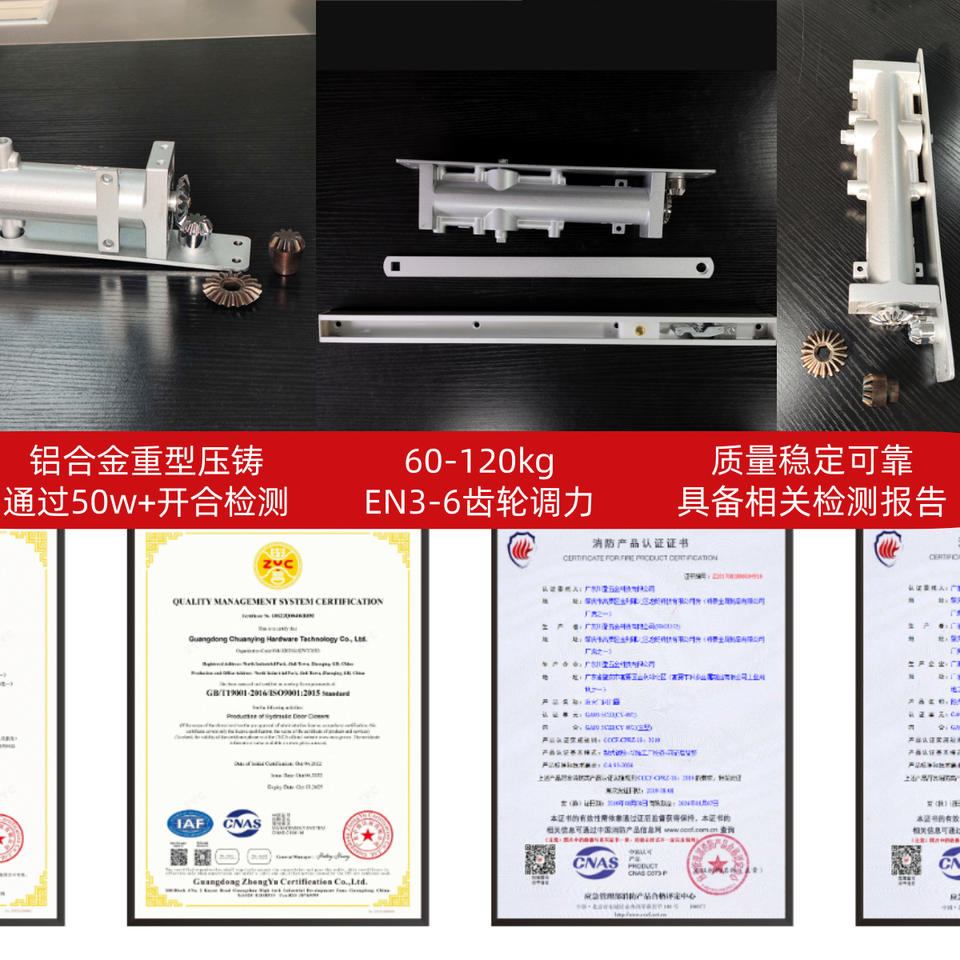 Ferme-porte invisible à came, force réglable de 60 à 120 kg, EN3-6
