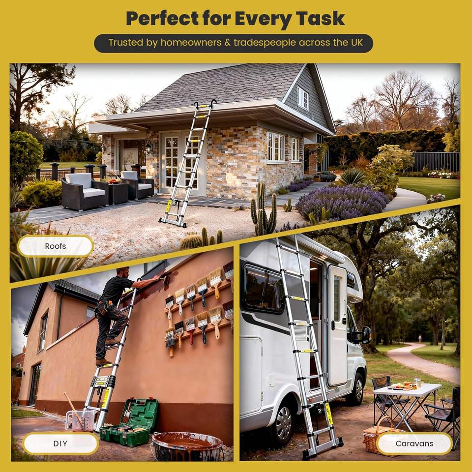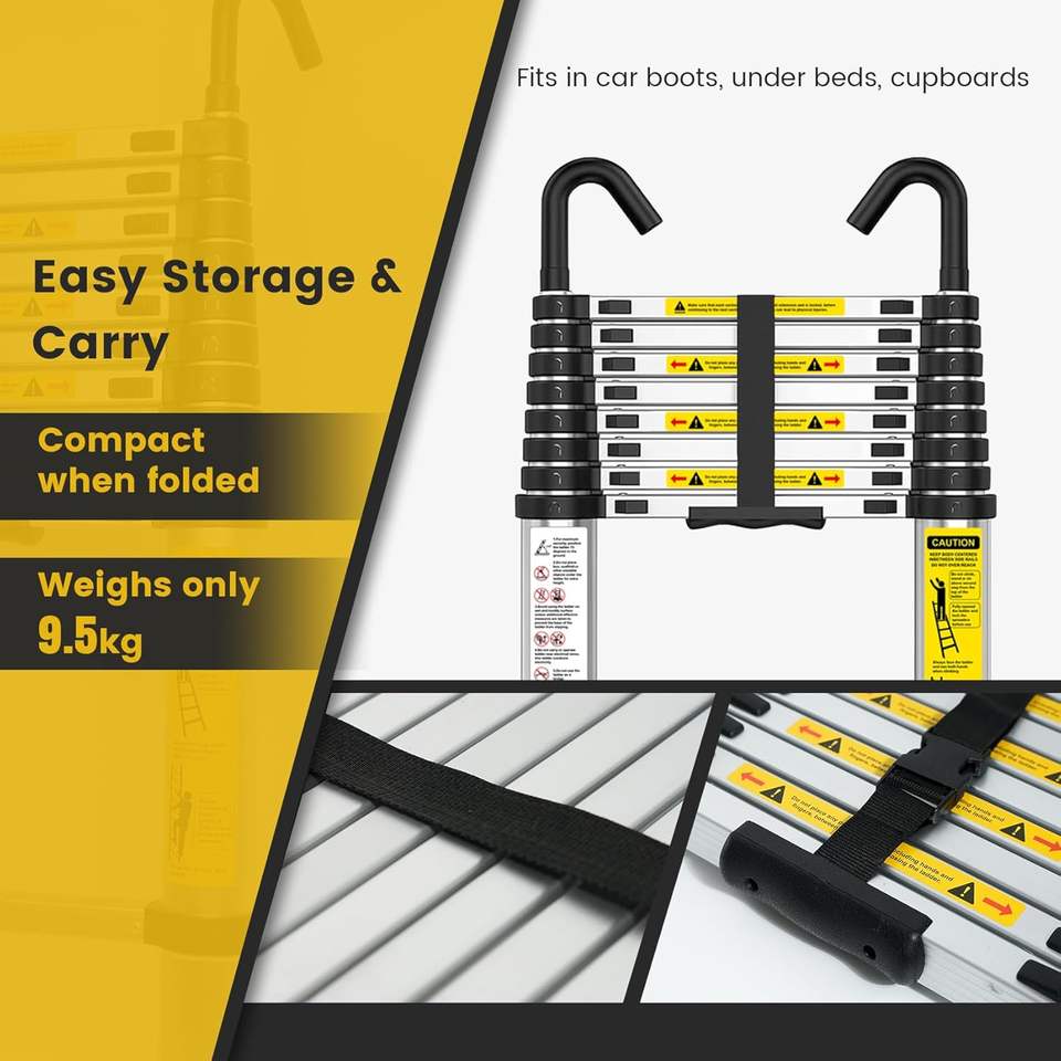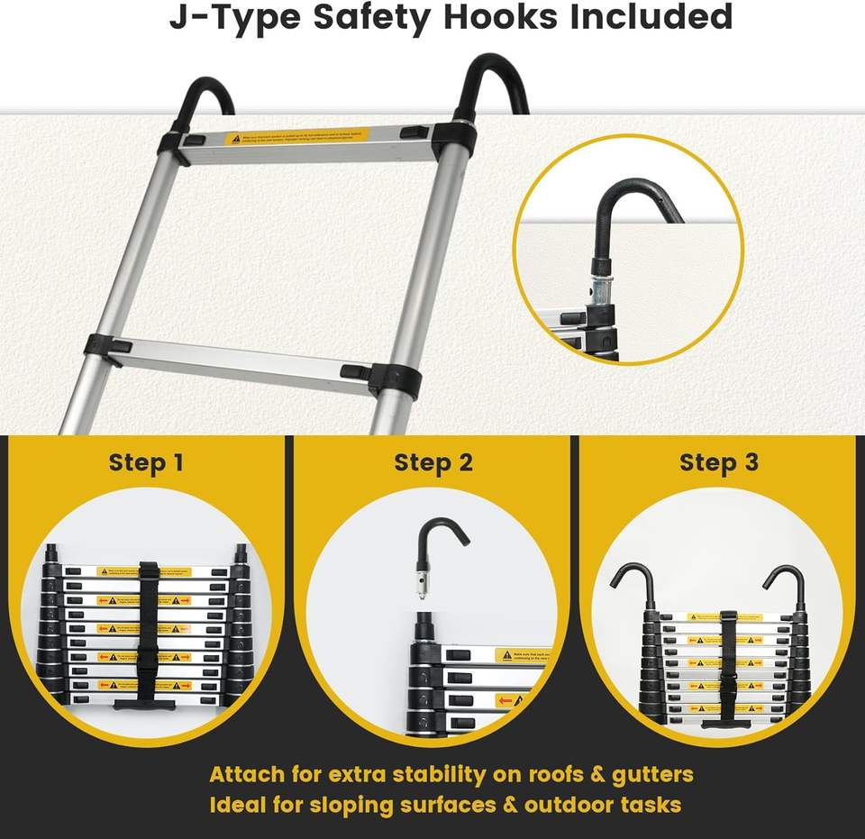 Échelle télescopique en aluminium portable pour toit, grenier, caravane, EN131 antidérapante, 2,6 m, 9 marches, crochets détachables