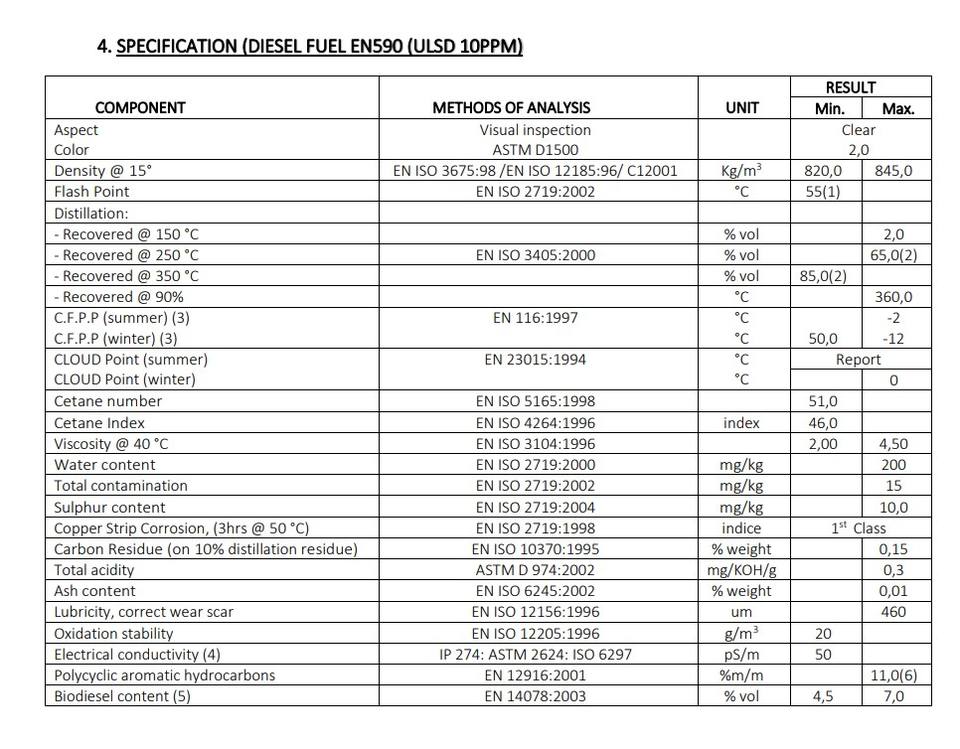 EN590 Diesel Fuel oil Exported worldwide CIF VTT FOB TTT TTV TTO