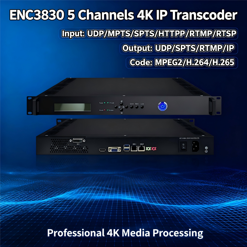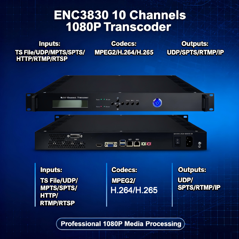 (ENC3830) Transcodeur vidéo IPTV 24 canaux Full HD avec encodage et transcoding H.264/H.265, entrées IP, compression du débit bittique