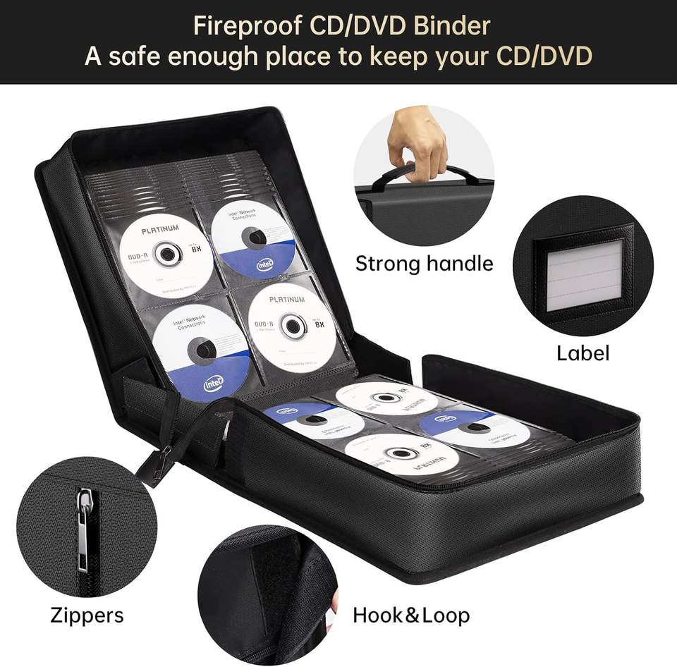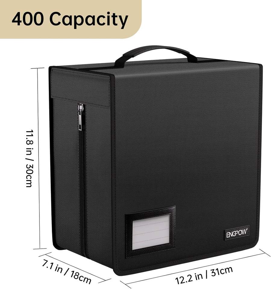 ENGPOW Étui ignifuge pour CD/stockage, capacité 400, classeur portable à fermeture éclair avec grand porte-cartes et porte-médias pour la maison/le bureau/les voyages