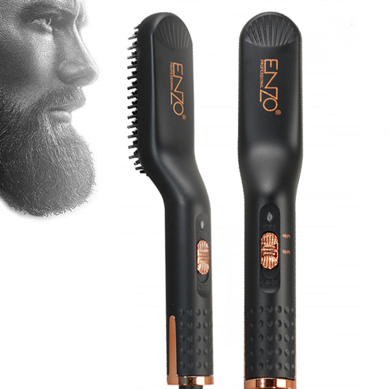 ENZO Portable électrique barbe chauffée outil de coiffure chaud petit lisseur de cheveux brosse longue et courte Style rapide barbe peigne pour hommes
