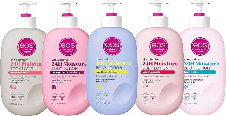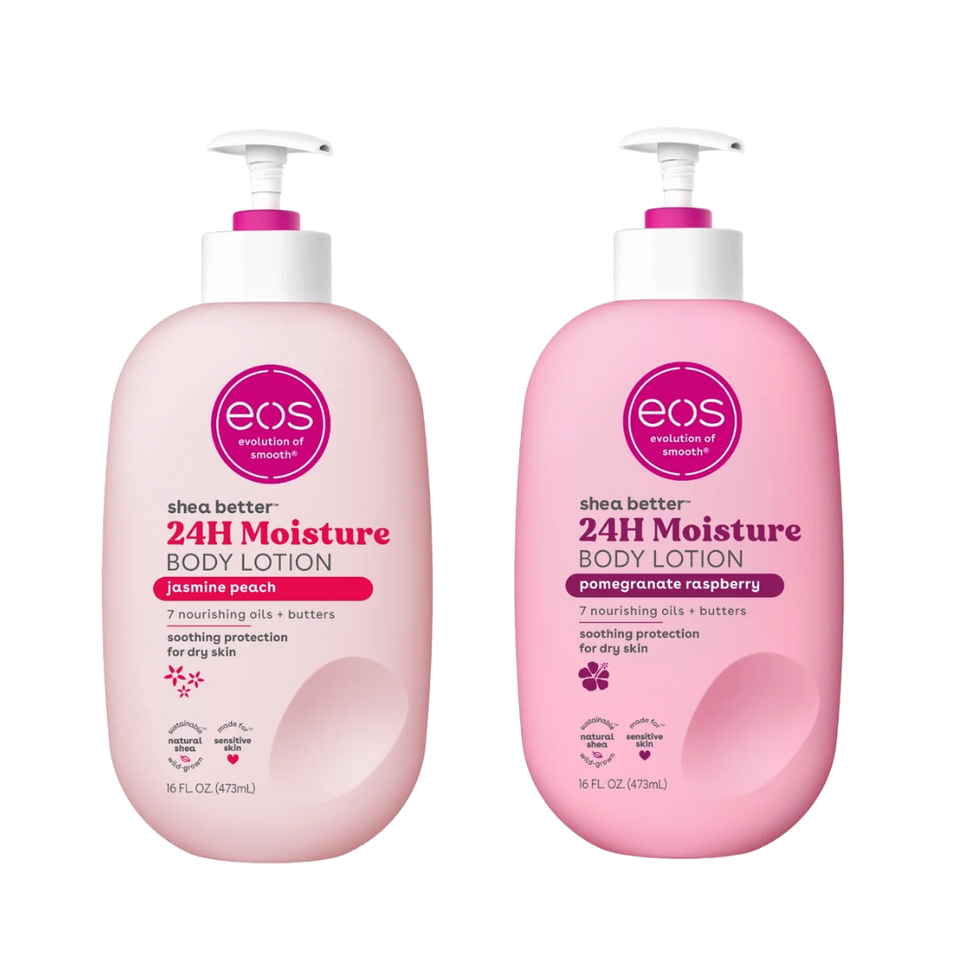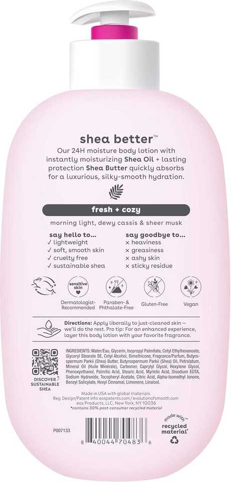 Lotion corporelle au karité EOS Grenade Framboise, hydratation 24h, légère, non grasse, végane naturelle, 473 ml