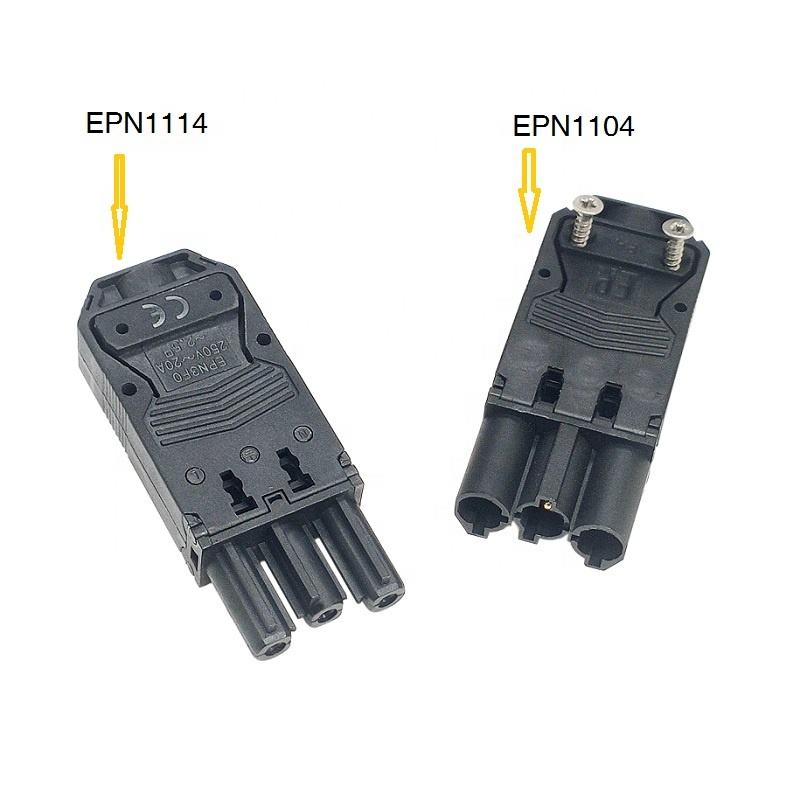 Ensemble de fiches mâle-femelle EPN1114 3P | 20A 250V IP20 Étanche pour luminaires LED et éclairage extérieur (gamme de fils de 0,5 à 2,5 mm²)
