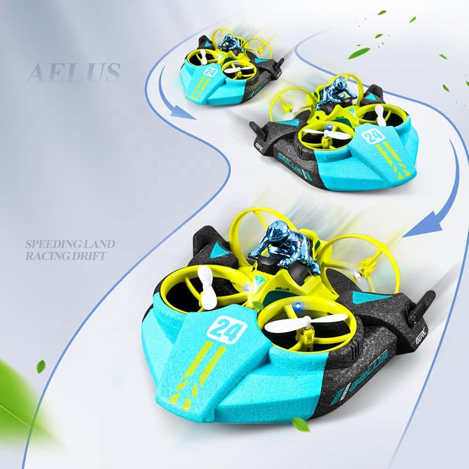Mousse EPP 3 en 1 Mini Aéroglisseur Rc Bateau Jouet Mer Terre Air Télécommande Maintien d'altitude Quadcopter Drone Course Drift Car avec Lumière