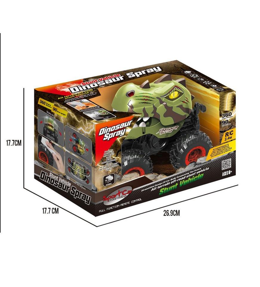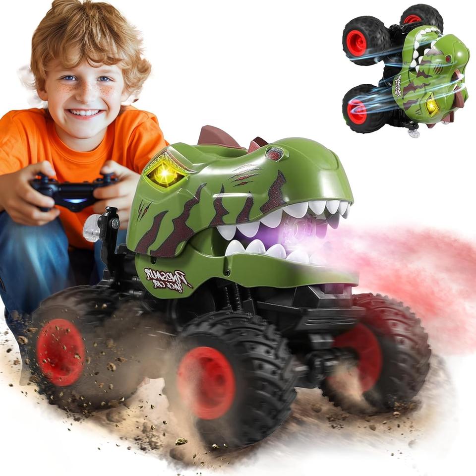 Camion télécommandé RC 2,4 GHz pour enfants, dinosaure lumineux et musical à l'échelle 1:20, avec fonctions de rotation à 360° et de pulvérisation