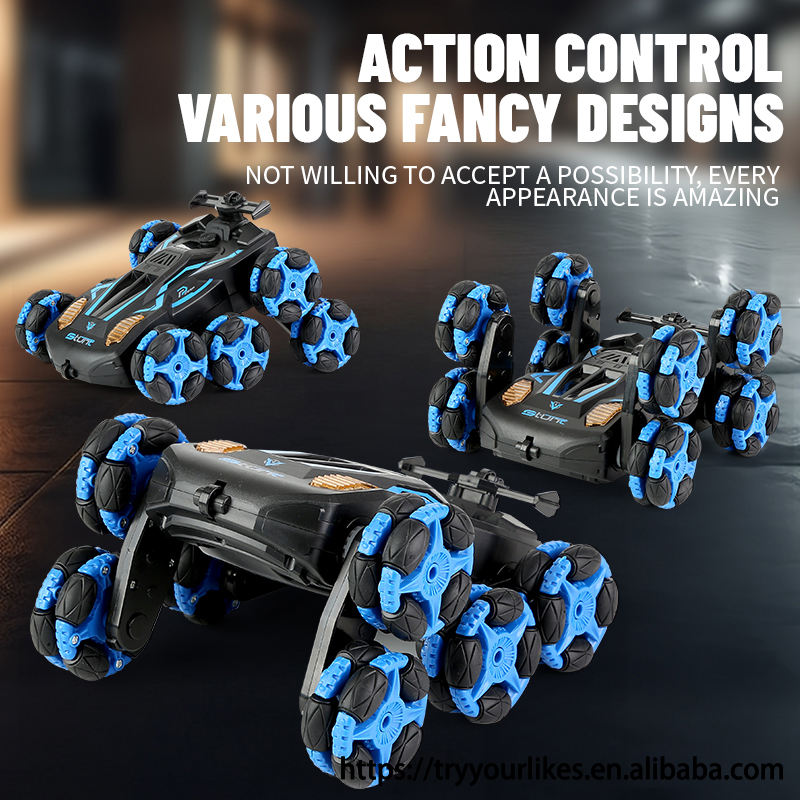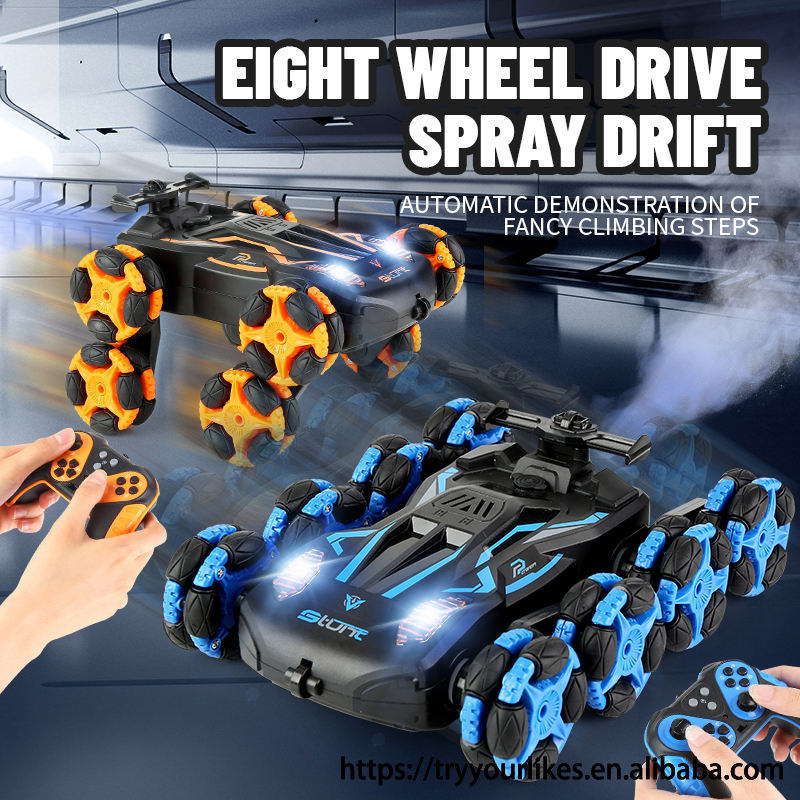 EPT Voiture robot chien de cascade et de drift à 8 roues, double télécommande, niveau expert, avec détection de gravité, lumières, jets d'eau et musique
