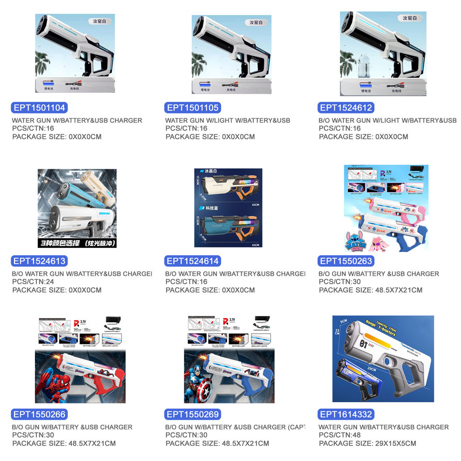 Description:PISTOLET À EAU B/O AVEC LUMIÈRE, BATTERIE ET CHARGEUR USB