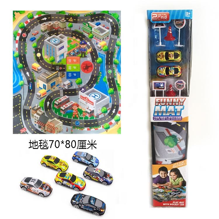 EPT Offre spéciale tapis de jeu en tissu pour enfants avec 2 voitures en métal et panneau routier tapis de jeu tapis de jeu