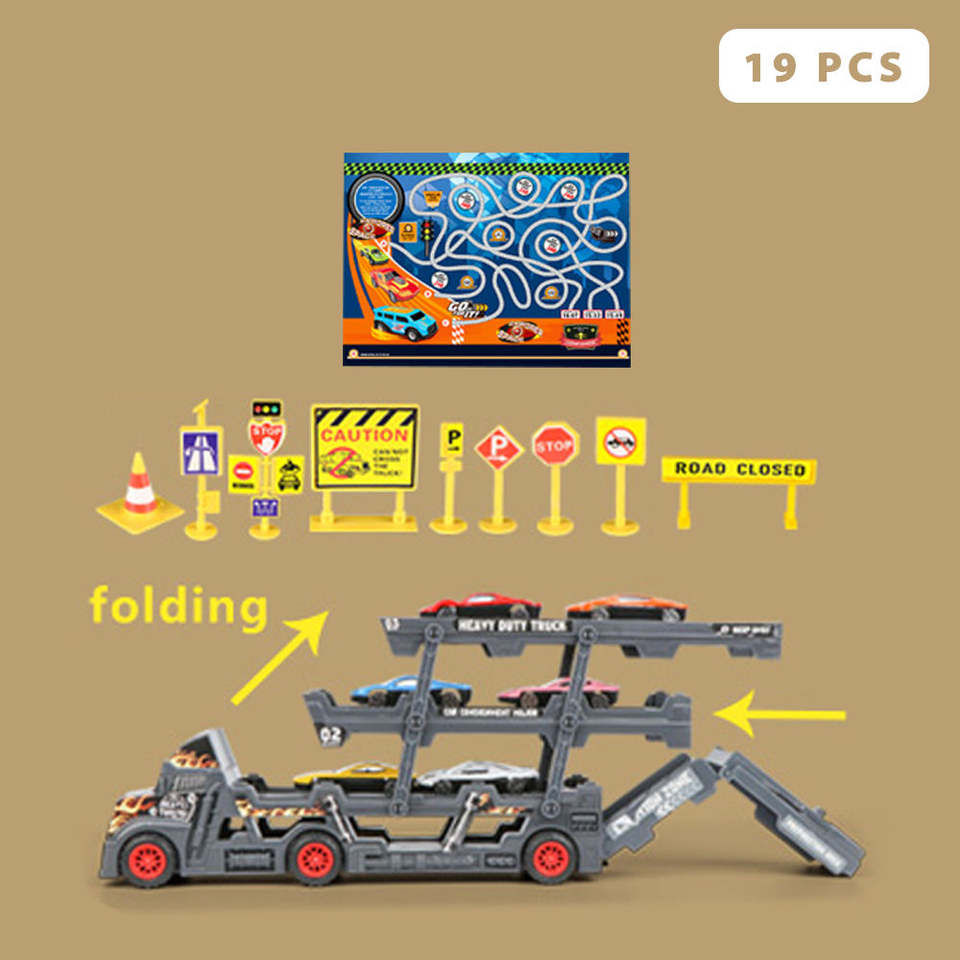 EPT Voitures Jouets Vente Chaude Modèles en Métal Moulé Sous Pression Ensemble de Camions à Roues Libres 8 Pièces Camion Semi-Remorque et Transporteur