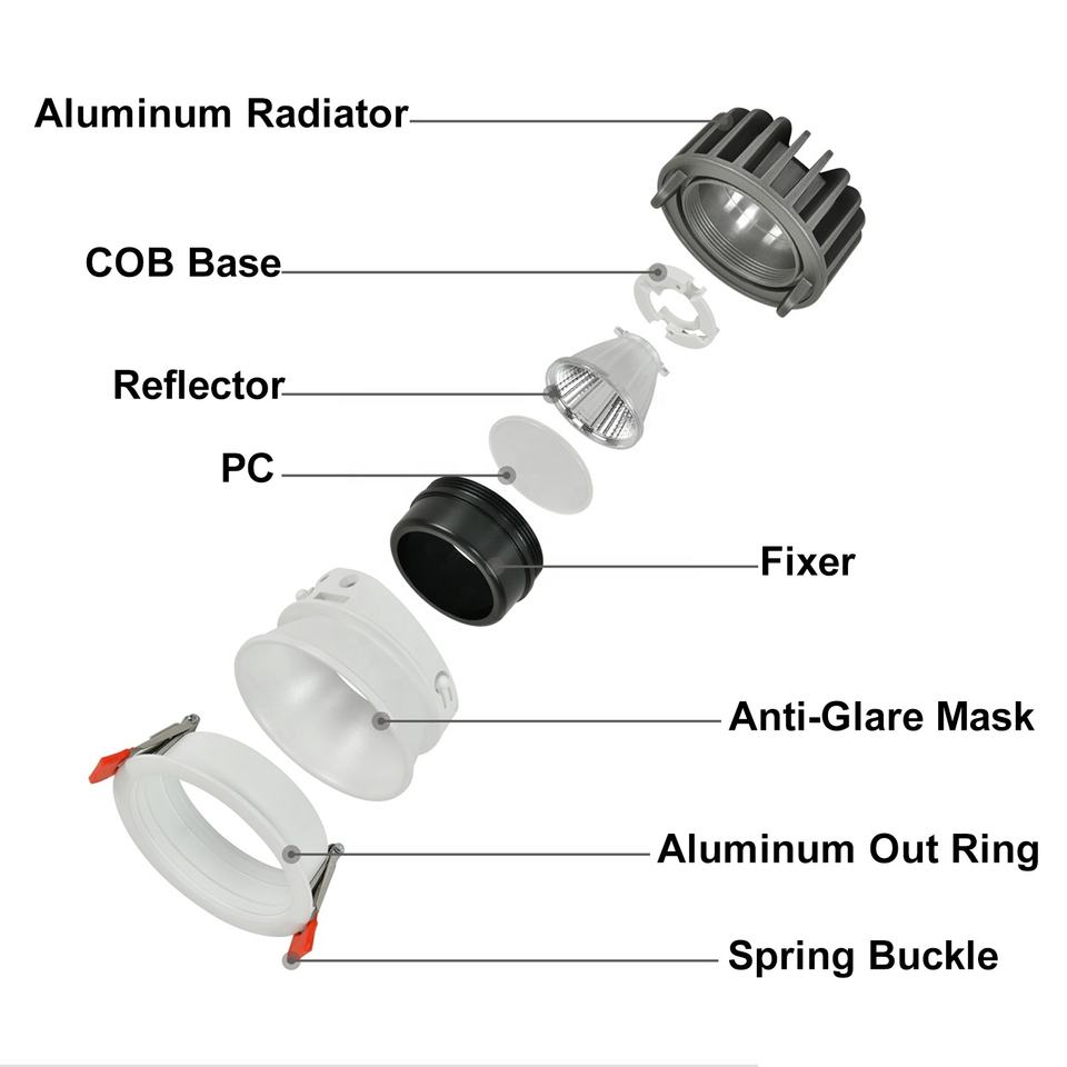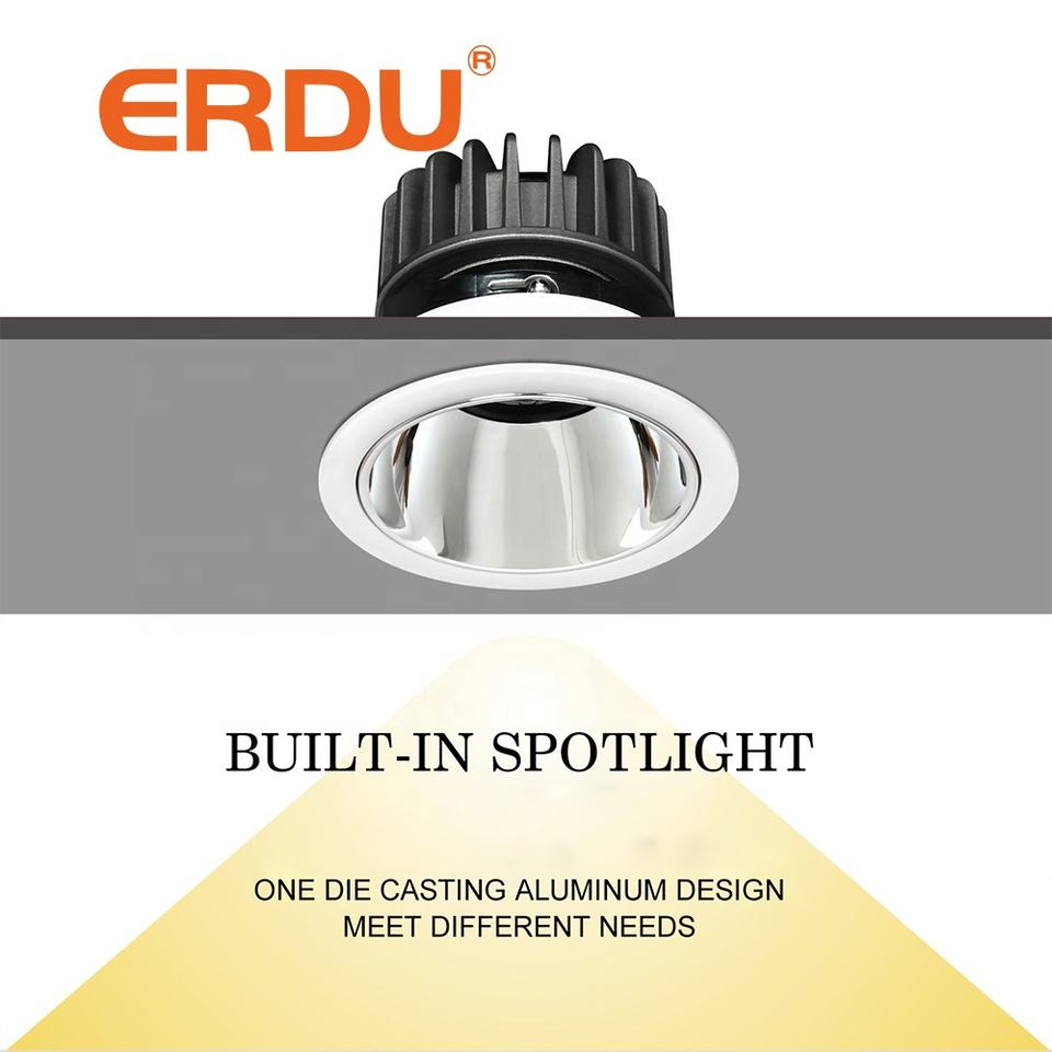 Spot LED encastré au plafond ERDU de haute qualité, réglable, anti-éblouissement, à nid d'abeilles, COB, 7W, noir et blanc