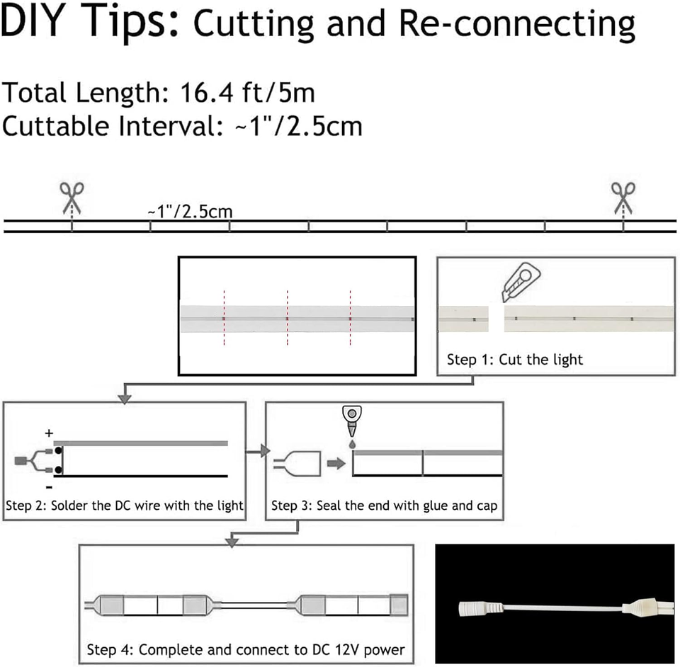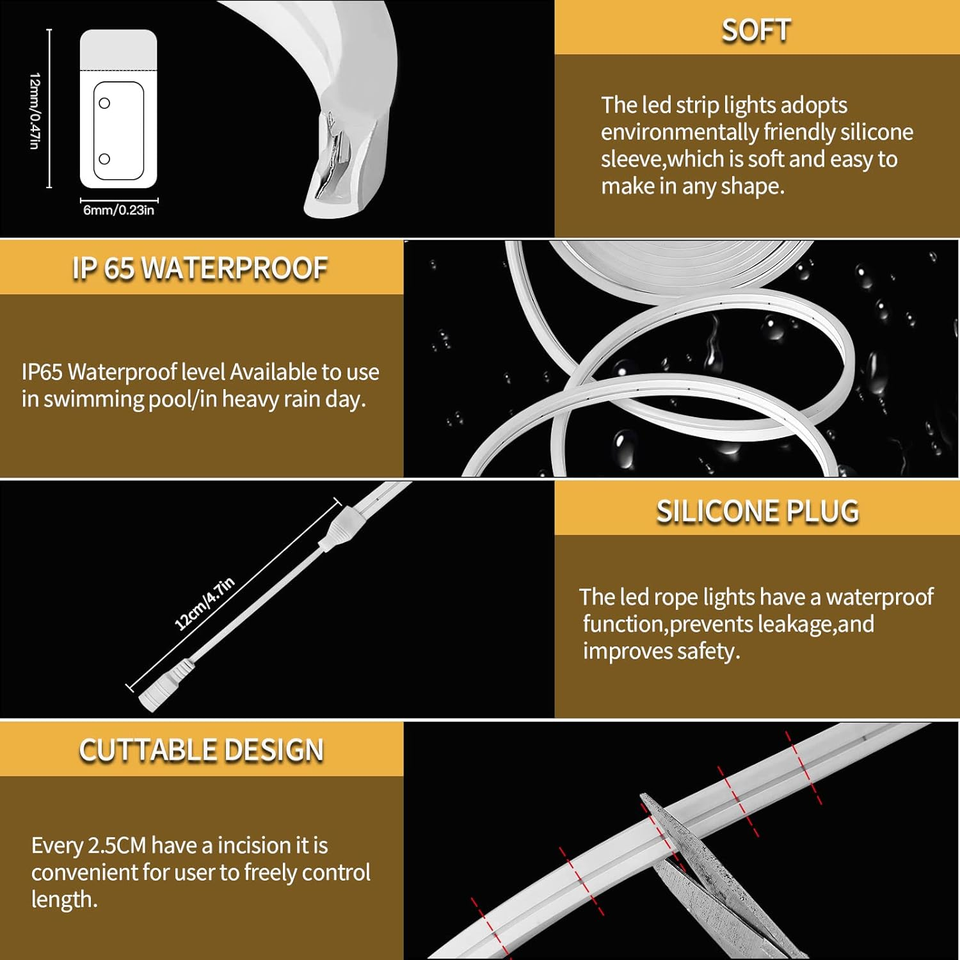 ESANN DC12V 120 LED/m IP67 Étanche 6MM 8MM Bande LED Néon Flexible et Découpable en PVC pour Éclairage de Jardin 50m/rouleau