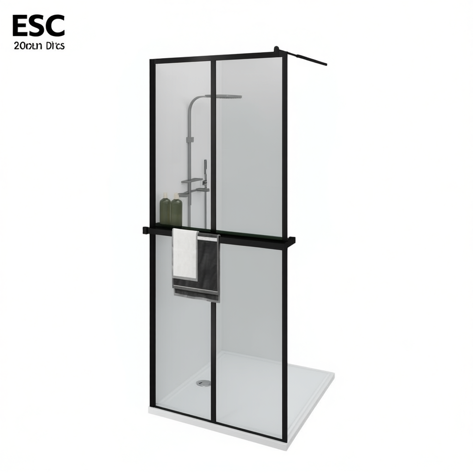 Porte de douche ESC Walk-In 35,4x76,8 pouces, verre ESG, cadre en aluminium, coulissante, design minimaliste pour salle de bain