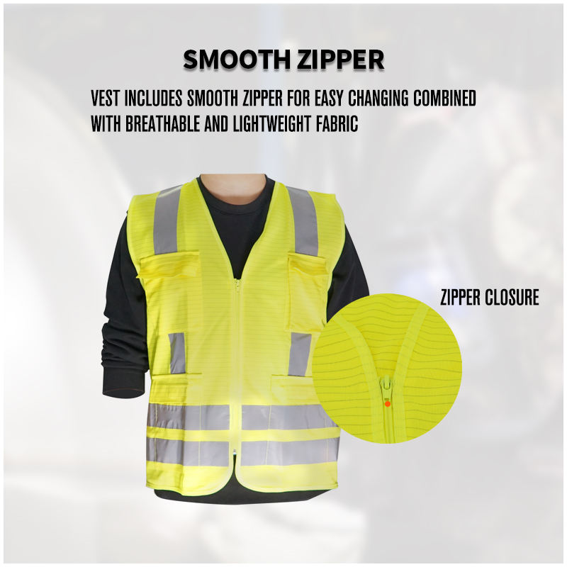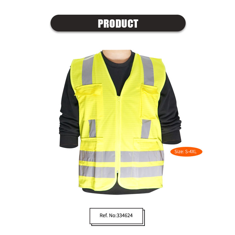 Gilet de sécurité antistatique, haute visibilité, jaune, réfléchissant, résistant aux flammes, pour le travail