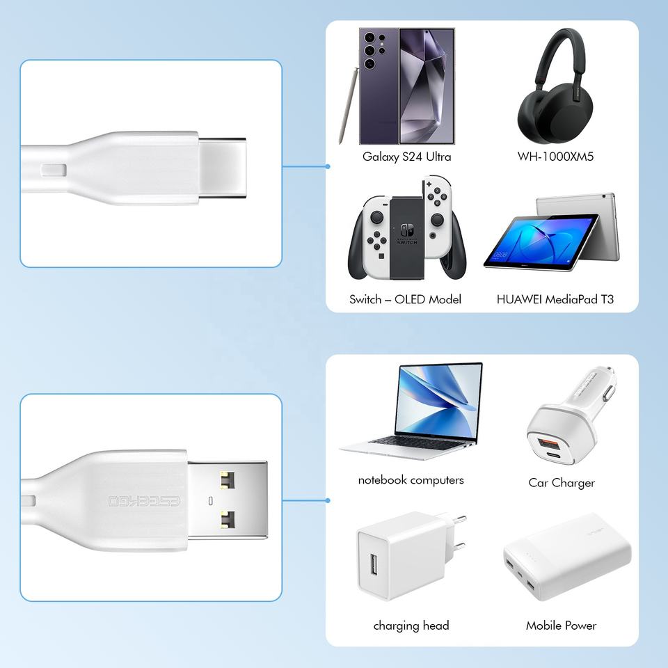 ESEEKGO Câble de données USB vers Type-C G-12A 3,3 pieds, compatibilité universelle, charge rapide pour ordinateur, écouteurs, léger