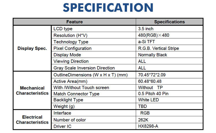 Écran LCD RGB de 3.5 pouces personnalisé en usine ET034WV01-G avec kits de carte de lecteur