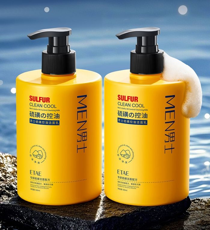 ETAE Huile nettoyante pour hommes pour le contrôle du soufre Lait nettoyant pour les pores et exfoliant Nettoyant pour le visage Contrôle de l'huile Hydratant Vente en gros
