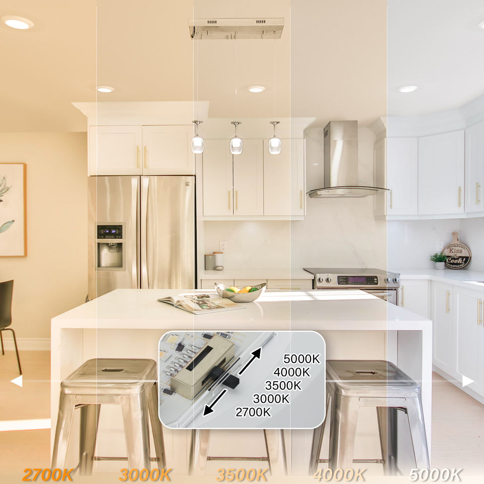 2700K (blanc chaud doux), 3500K (blanc chaud), 4100K (blanc neutre), 5000K (lumière du jour), 3000K