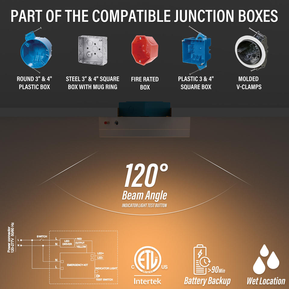 Plafonnier d'urgence LED ETL avec batterie de secours pour montage en surface ultra-plat de 7 pouces à éclairage périphérique 120-277V