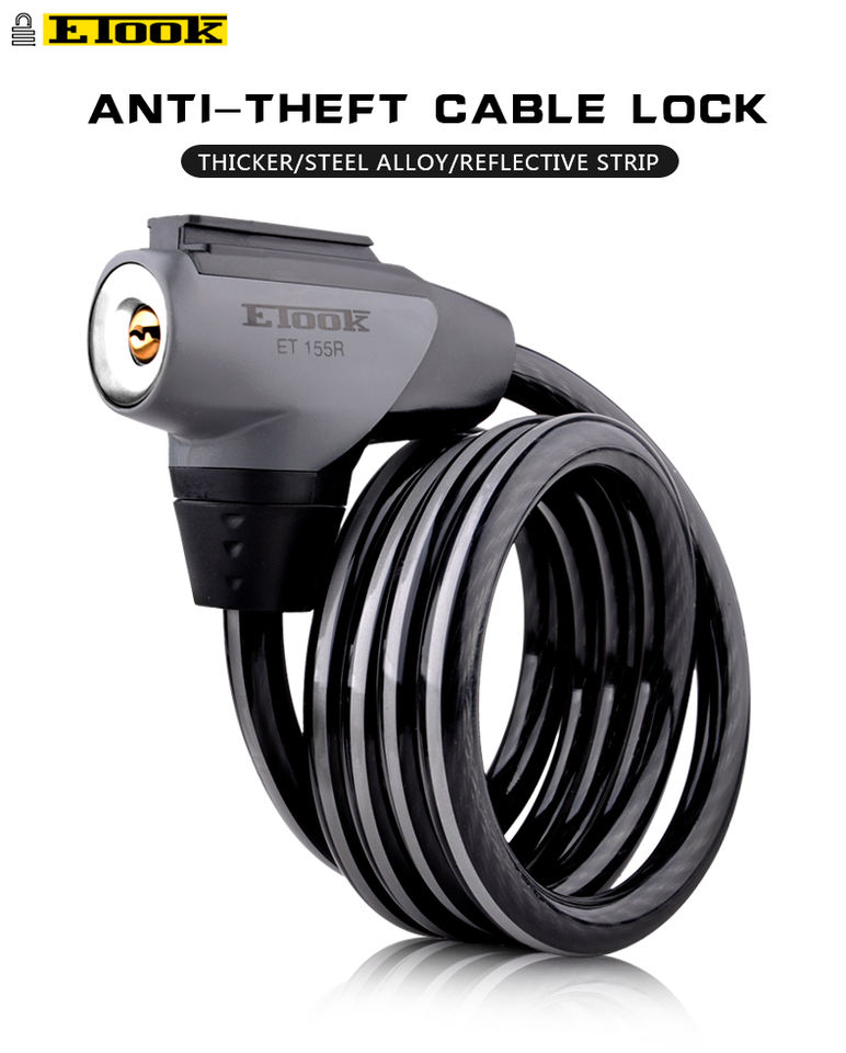 Serrure de vélo en fil d'acier fiable ETOOK Serrure de câble de vélo 1000mm/1500mm avec revêtement en PVC