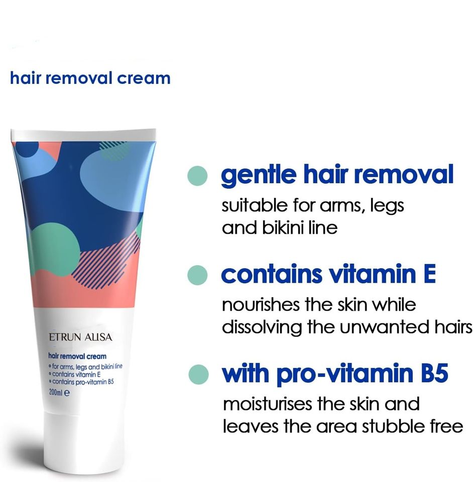 Crème dépilatoire ETRUN ALISA en marque propre pour le visage/le corps/les bras/les jambes/la ligne du bikini - Vitamine E, beurre de karité, aloe vera, minimise les démangeaisons