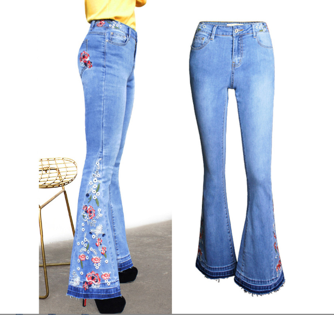 Taille UE Jeans en denim de haute qualité à broderie de fleurs pour femmes
