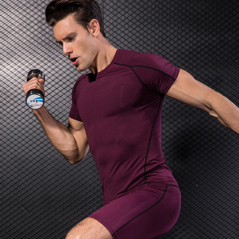 Taille UE Hommes Élastique Séchage Rapide Serré Hommes Dry Fit Sports Running Fitness Gym Wear Training Short Sleeve Plain T-shirt pour hommes