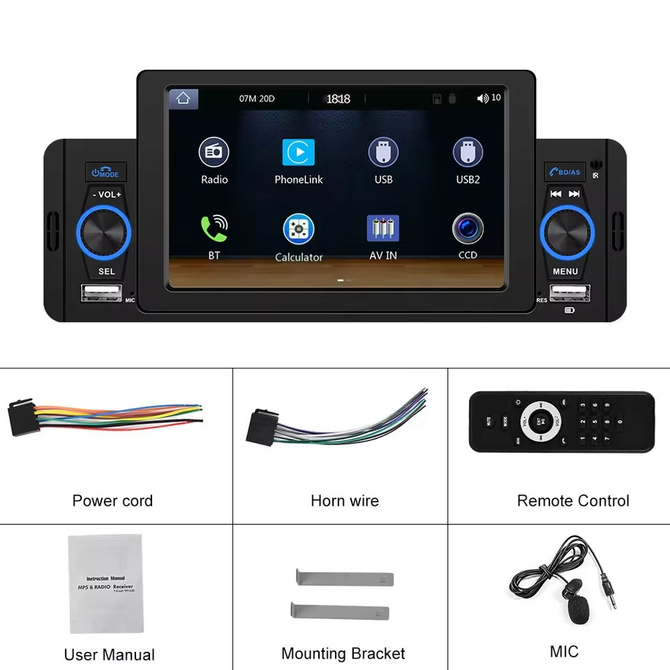 Stock UE Autoradio 5 pouces Podofo 1 Din CarPlay Android Auto Lecteur MP5 FM USB Charge rapide Unité centrale